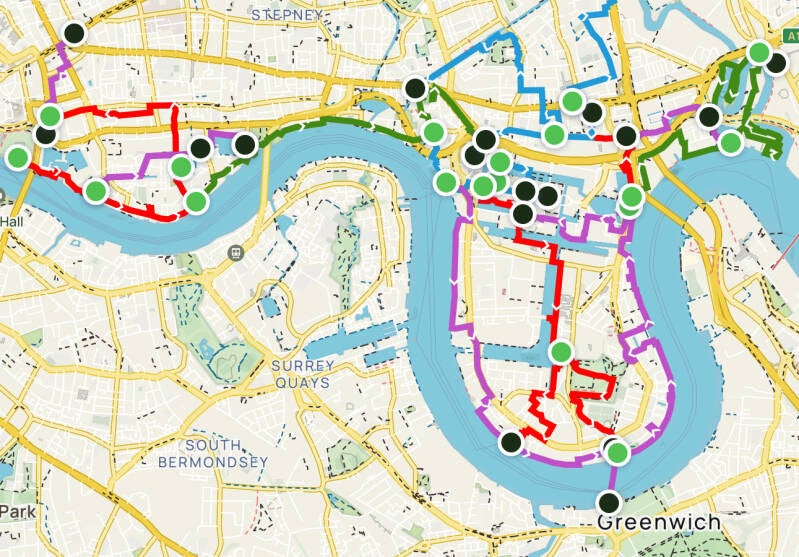 (TOWER OF LONDON)>WAPPING>SHADWELL>LIMEHOUSE>ISLE OF DOGS>BLACKWALL>POPLAR